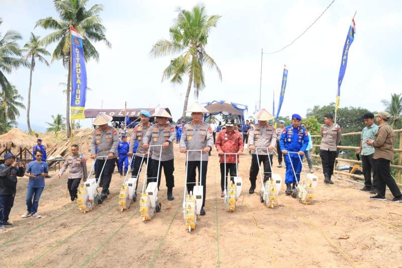Polda Banten bersama jajaran dan kelompok tani binaan Polairud Polda Banten manfaatkan lahan eks tambang untuk …